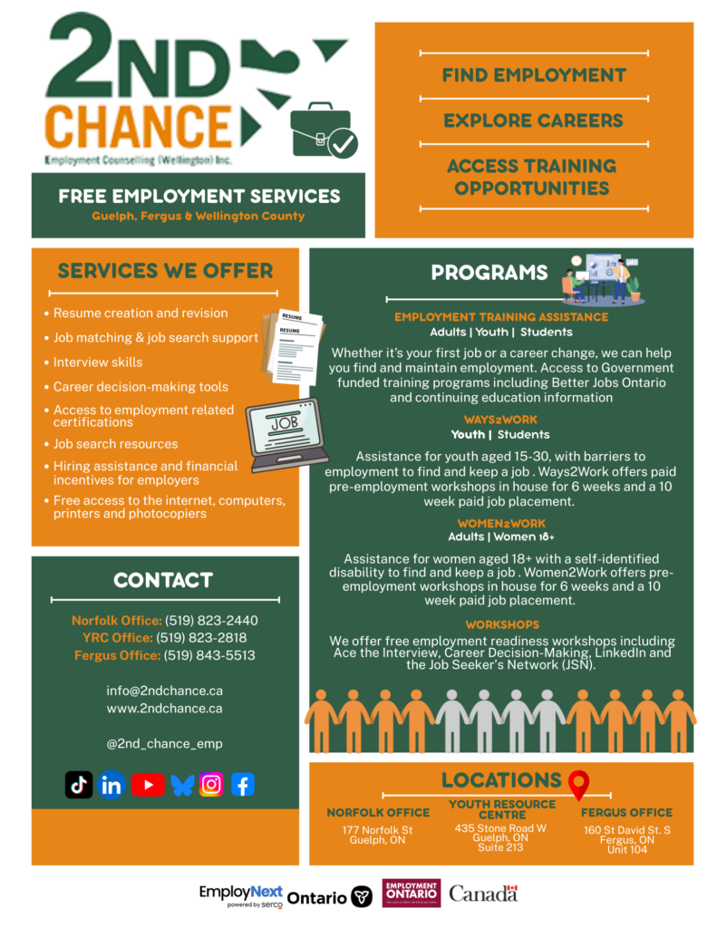 Look at all the programming options available to you! 2nd chance offers a variety of programs designed to help you find and maintain employment, the programs range from offering minimal assistance right to assisting you on the job if you require it. Ways2Work Employment Ontario Women2Work